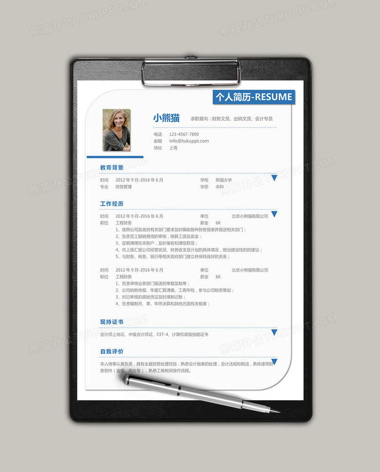 书创办公 » 极简风财务文员出纳会计求职简历个人简历简历word简历