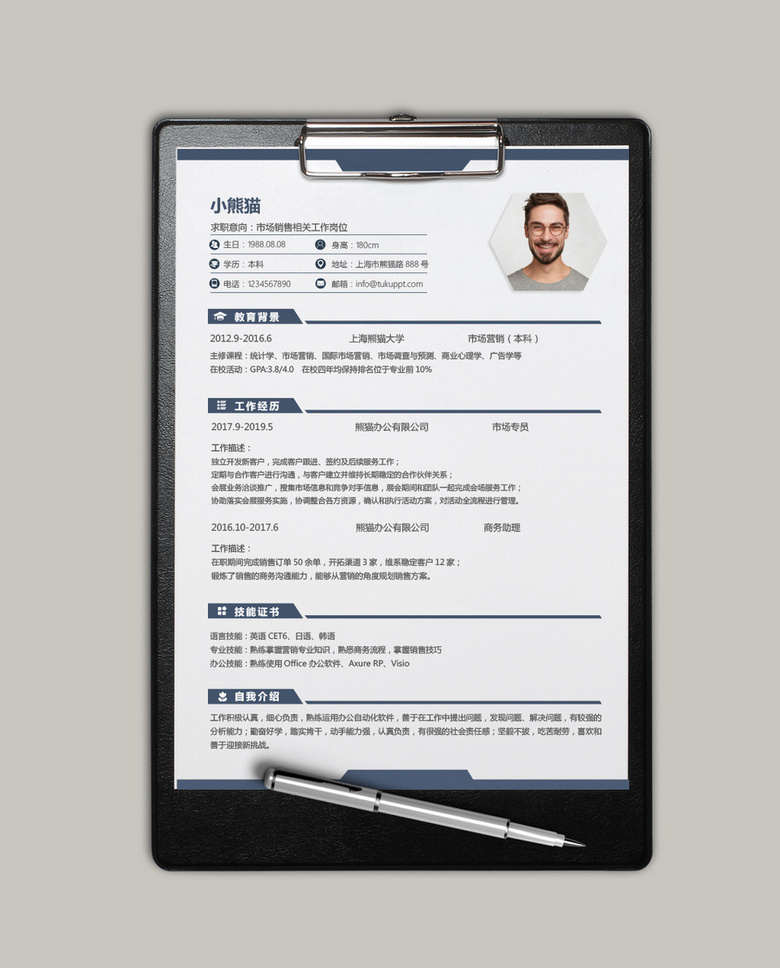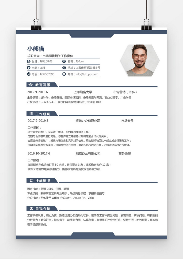 书创办公 » 蓝色经典商务风格市场销售求职简历word简历模板