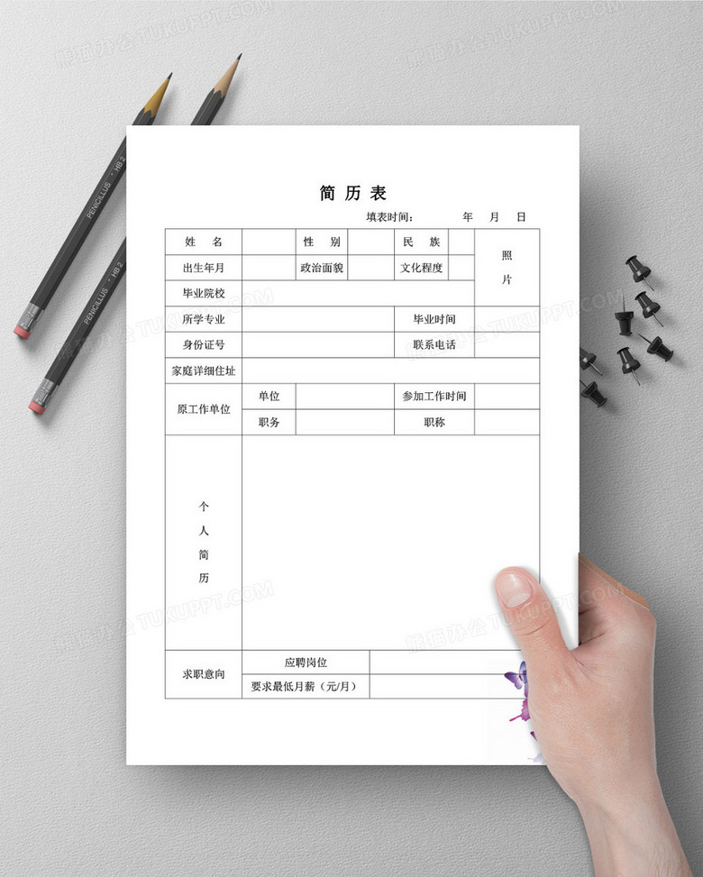 本作品内容为个人求职简历word空白简历模板, 格式为 docx, 大小1 MB, 页数为1, 请使用软件Word(2016)打开, 作品中主体文字及图片可替换修改,文字修改可直接点击文本框进行编辑,图片更改可选中图片后单击鼠标右键选择更换图片,也可根据自身需求增加和删除作品中的内容, 源文件无水印